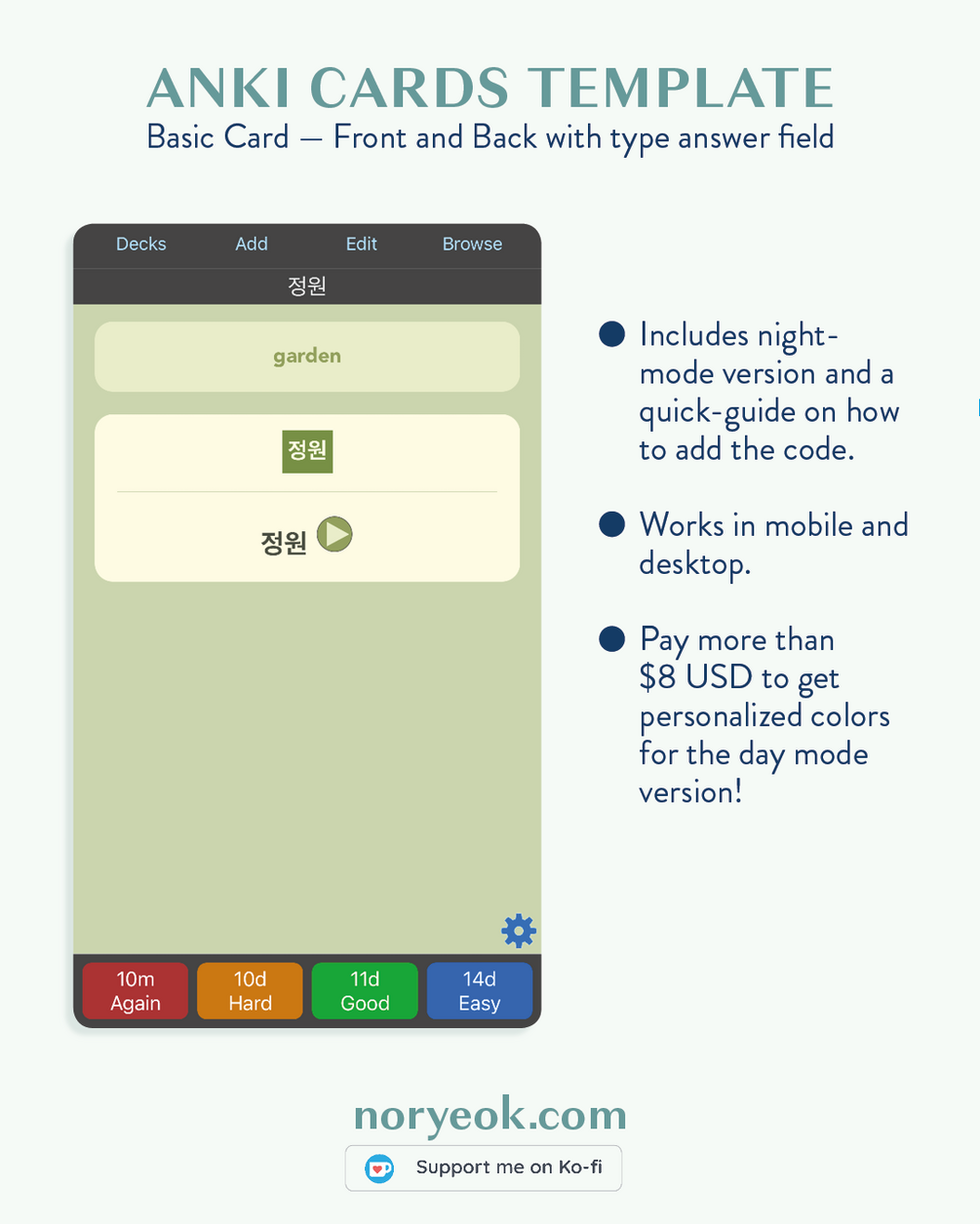 Pastel Green Anki Template - Enjoy your Anki reviews with pretty cards! 💖